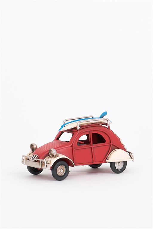 Ben jij een liefhebber van miniaturen, auto's en/of surfen? Deze charmante kleine rode metalen auto is een must-have voor jouw verzameling! Het model is prachtig gedetailleerd en heeft een surfplank op het dak, perfect voor die zomer vibe.